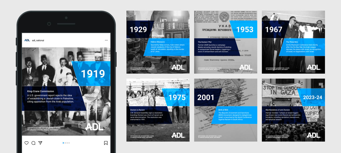 I collaborated closely with Creative Director Jerry Tamburro, Animator Hunter Hanson, and Senior Editors Phyllis Furman and John Townsend to develop five social posts aimed at driving the ADL audience to the Resource. These posts were prominently featured across ADL's four social media channels: Facebook, LinkedIn, Instagram, and X.